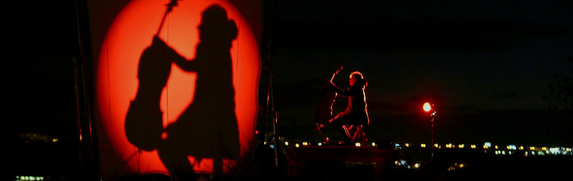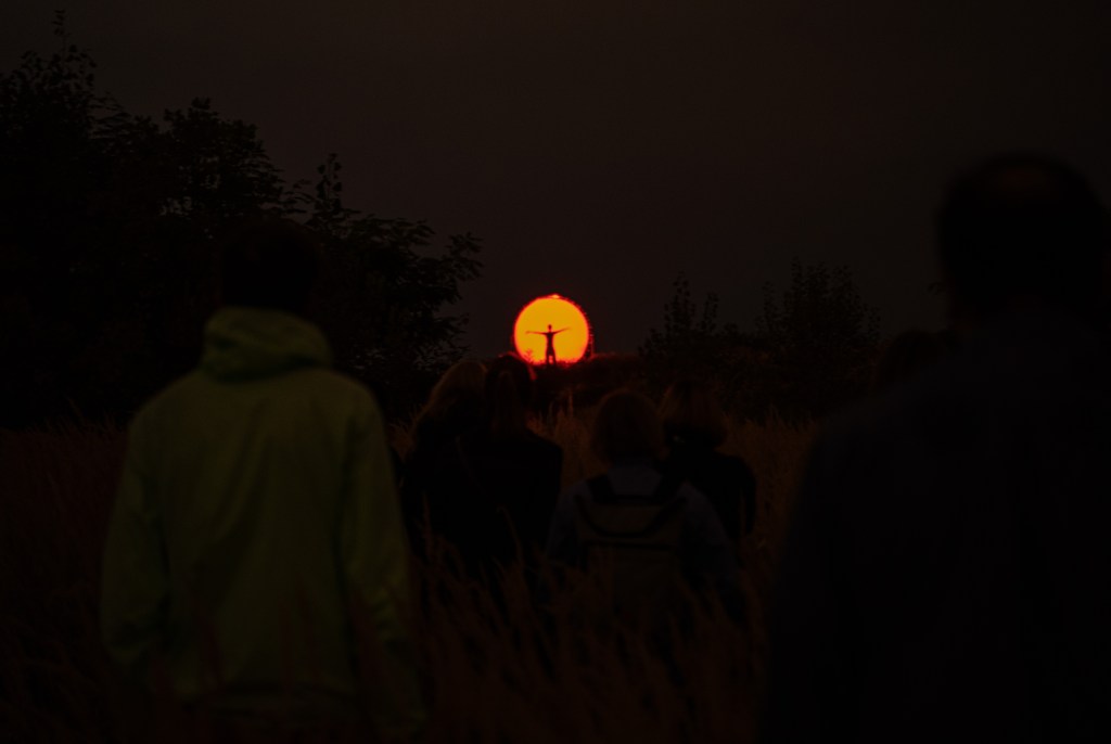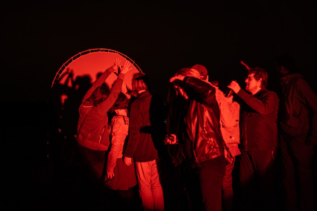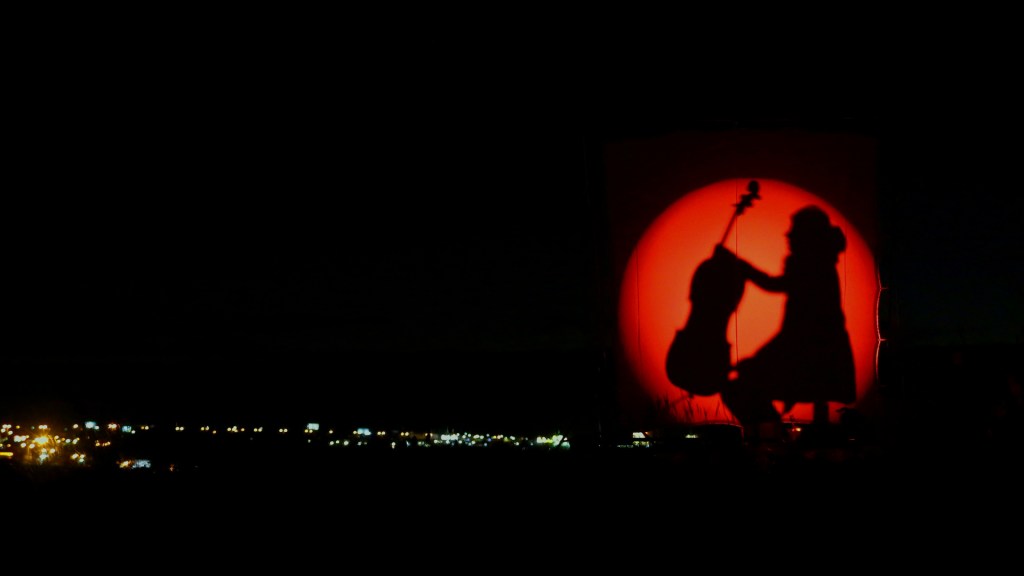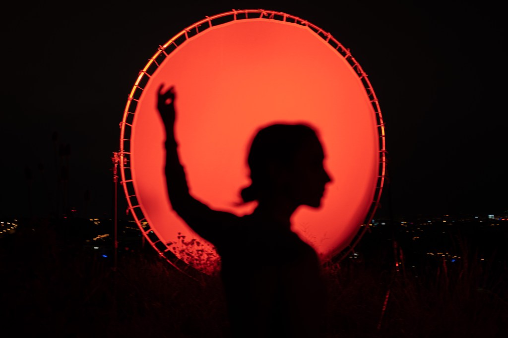 K tomu jí v průběhu loňského roku napomáhaly Idiny obrovské červené terče, které na horizonty promítaly práci tesaře Ondry a hudbu violoncellistky Doroty.
