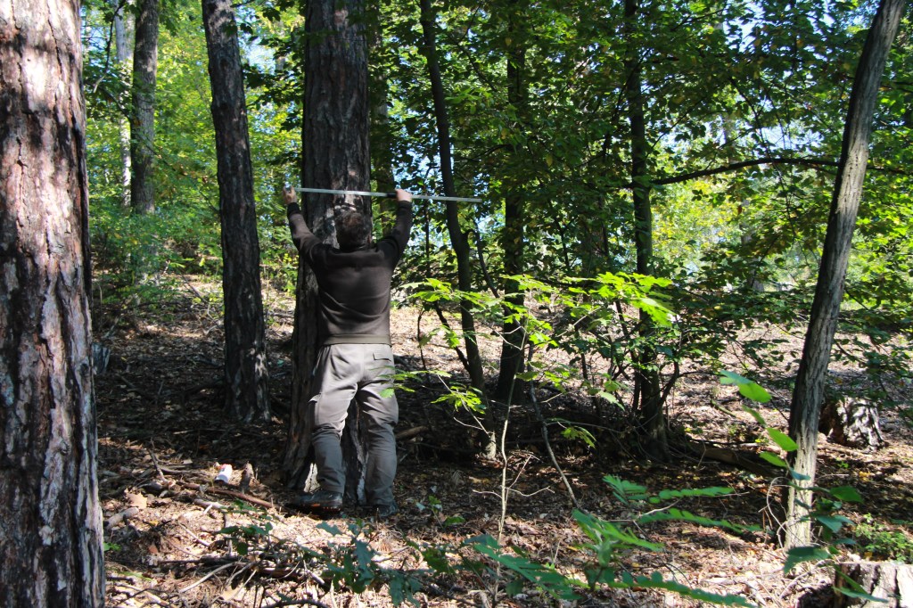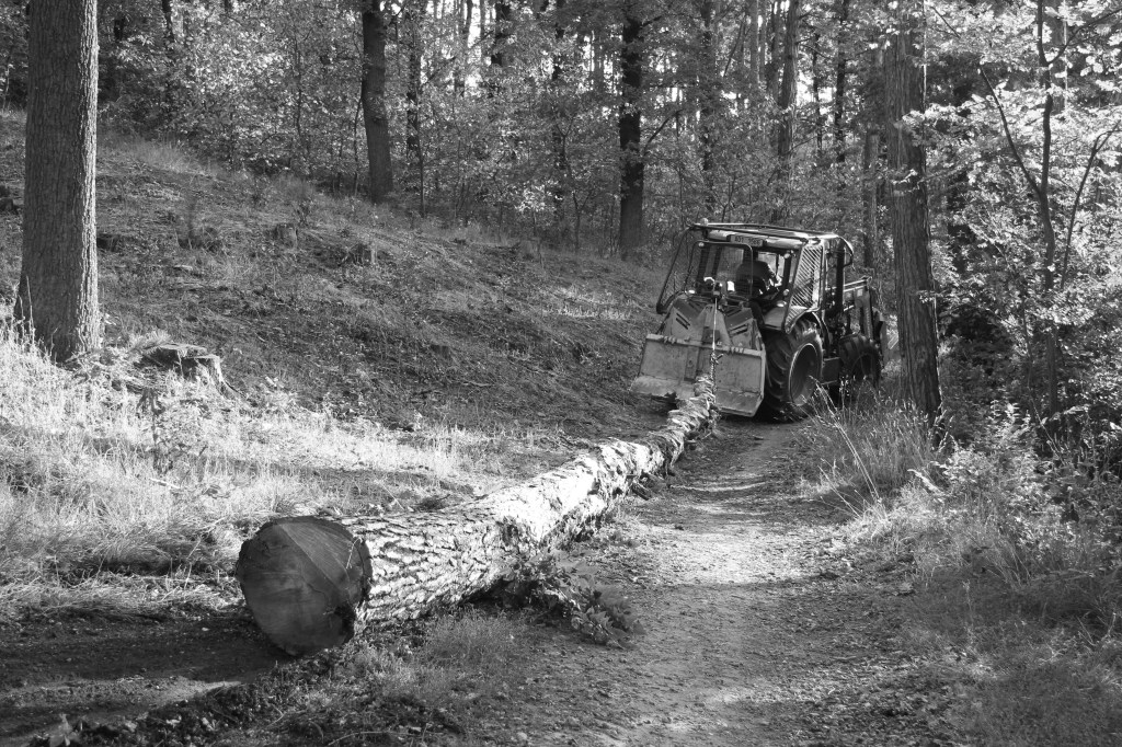 Vytipování borovic s nadlesním, těžba a příprava materiálu na místo