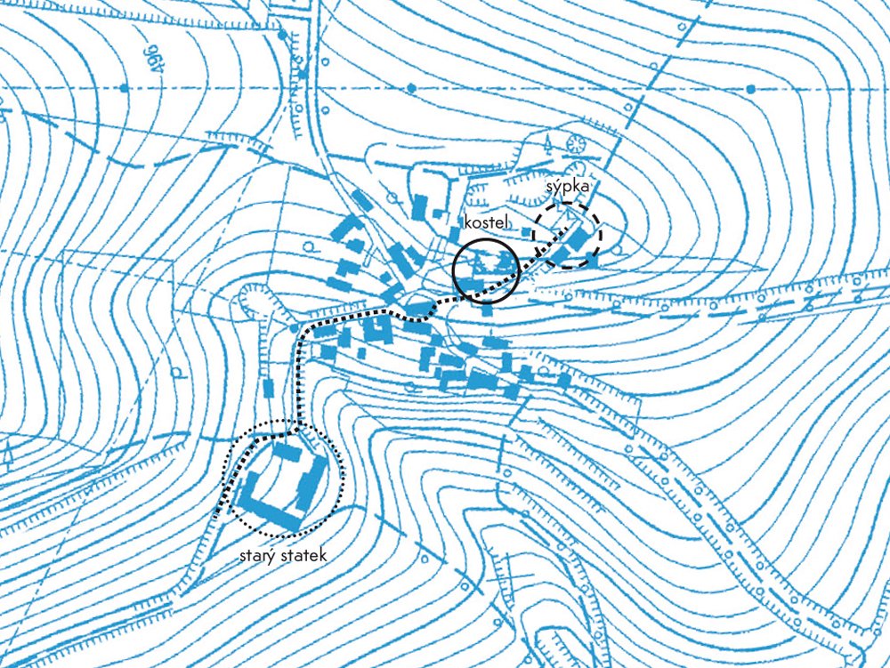 Spolupracuji s Janem Trejbalem (studentem AVU). Pod vlivem jeho způsobu vnímání krajiny vede projekt k intuitivnímu hledání rozhraní sídla a krajiny. Pomocí GPS záznamu Jan vytyčuje cestu, místo pro náhodná setkání zrcadlící v sobě celou vesnici i odlišné charaktery krajiny. Cesta vede podél polí, starých sadů, březového háje, zarostlého lomu, luk a potoka. Je paralelou záhumení cesty, která pozbyla svého původního významu a do které se promítá nový vztah ke krajině jako k prostředníkovi mezi vnějším světem a naší vnitřní krajinou.
