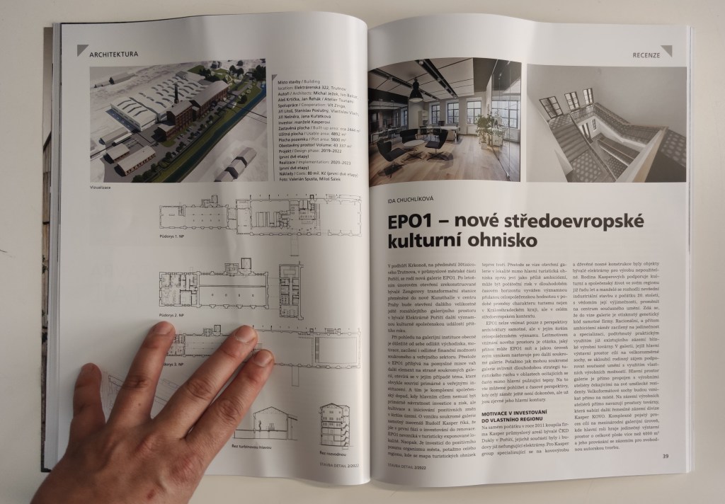 Recenze budoucí galerie EPO1 v Trutnově v časopisu Stavba 2/2022.